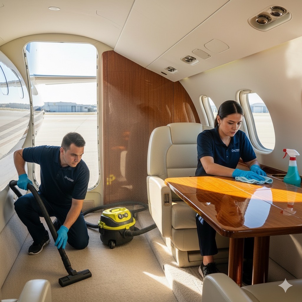 Que ce soit pour un nettoyage de routine ou une préparation minutieuse avant un vol important, notre équipe expérimentée s'engage à travailler dans le respect des délais et des exigences spécifiques de nos clients. Nous intervenons avec la plus grande discrétion, en tenant compte des contraintes de temps et de confidentialité propres à l'aviation privée. Chaque mission est personnalisée afin de garantir des prestations adaptées, qu'il s'agisse de la remise à neuf des cabines VIP, du dépoussiérage des cockpits ou du traitement approfondi des sanitaires et zones de restauration.